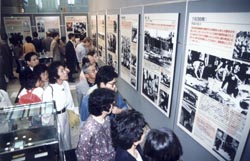 Mrs. Yukiko Sugihara, wife of Chiuni Sugihara and then-U.S. ambassador to Japan, Walter Mondale were those in attendance at the opening in Japan in 1994, where the exhibit was sponsored by SokaUniversity of Japan.