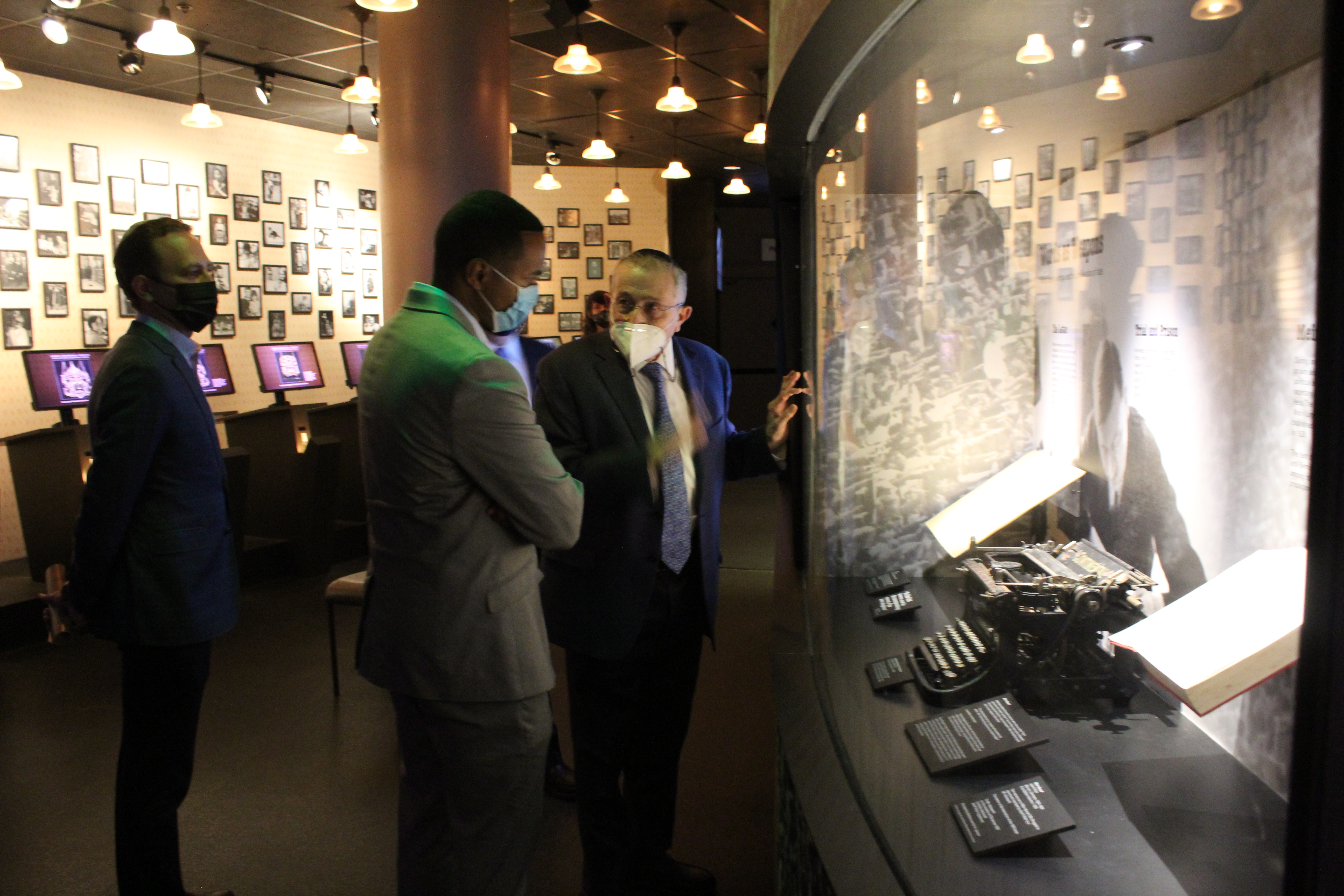 Rabbi Marvin Hiershowing ‘The Hitler Letter’ to US Congressman Ritchie Torres at The Museum of Tolerance.
