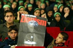 Photo: Iranian students hold a poster during a conference in Tehran entitled 'The World withoutZionism. Iranian President Mahmoud Ahmadinejad said that Israel should be "wiped off the map."
