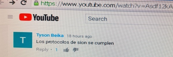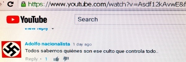 - 'We all know who is this cult that controls all' (Todos sabemos quiénes son ese culto que controla todo..) - a commentby 'Adolfo nacionalista', decorated with a swastika;