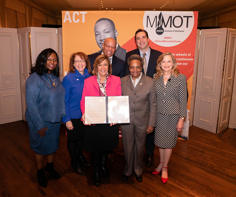 A new Chicago City Council grant has been passed recognizing the need for increased tolerance education in Illinois in the wake of ongoing hate incidents. To honor and acknowledge thoseresponsible for helping to move this historic grant along, the Simon Wiesenthal Center presented a resolution commending the Illinois General Assembly for passing the grant to assist the Simon Wiesenthal Center indeveloping a mobile Museum of Tolerance. The Mobile Museum of Tolerance (MMOT) will be travelling to schools the beginning of the 2020 academic year, teaching the impacts of bigotry, discrimination and hate and the importance of diversity, tolerance and inclusion; all with Illinois-specificcurriculum.