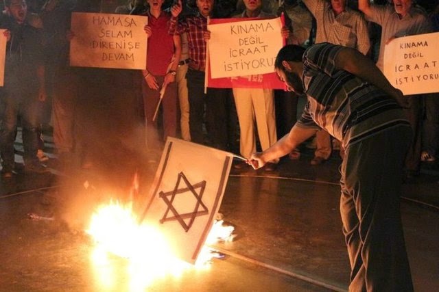 The current Hamas-Israel conflict has spawned violent demonstrations— that have included members of Ergogan's own AKPParty--against the Israeli Embassy and Jewish institutions. As a result, family members of Israeli embassy staffers have been asked by their government to leave the country. In a news interview,one prominent activist said, "Turkish Jews will pay dearly… Jewish tourists, don't dare to come to Turkey. Tonight and tomorrow we aregoing to hold a different kind of protest."